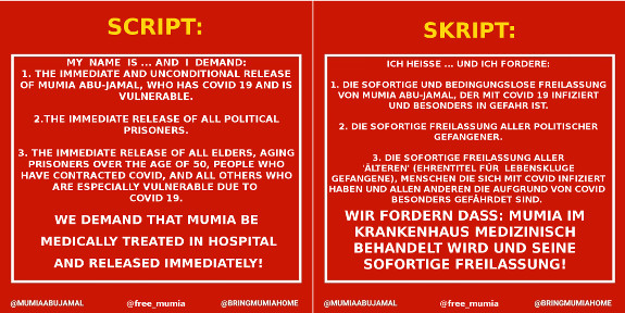 Der 9. Dezember ist trotz des meist unfreundlichen Wetters seit Jahren ein länderübergreifender Aktionstag für Mumias Freiheit. Ausserhalb der USA gibt es heute Proteste und Veranstaltungen in Mexico City, Paris, London und